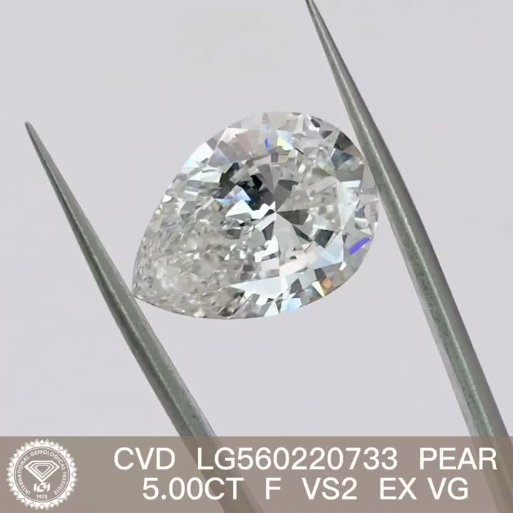 CVD ラボ グロウン ダイヤモンド、IGI ペアシェイプ、5.00 カラット、F カラー、VS2 クラリティ この IGI 認定の CVD ラボ グロウン ダイヤモンドは、現代の高級ジュエリー用に作られた洗練されたペアシェイプの宝石です。 5.00 カラット、F カラー、VS2 クラリティを備え、輝き、純度、永続的な価値のバランスの取れた組み合わせを提供します。精密なカットと入念な研磨により、強力な照明性能とあらゆる角度からのエレガントな外観を実現します。 4C 認定品質 国際 4C 規格に準拠してグレーディングされたこのダイヤモンドは、カット、カラー、クラリティ、カラット重量の一貫性を保証します。洋ナシ型は視覚的な長さと洗練さを高め、主張のあるデザインに適しており、毎日の着用にも快適です。倫理的で紛争フリー CVD 技術を使用して製造されたこのラボ グロウン ダイヤモンドは、環境に責任があり、紛争フリーであり、透明な調達と現代の持続可能性の価値観をサポートしています。性能と価値 天然ダイヤモンドと同じ硬度、構造、光学特性を共有し、同じ輝きと耐久性を実現します。同様の品質で採掘されたダイヤモンドと比較して、美しさや寿命を損なうことなく、より手頃な価格で提供されます。理想的な用途 婚約指輪、カスタムリング、ペンダント、ハイエンドのオーダーメイドジュエリーに最適で、個人的な着用とプロのジュエリー制作の両方に適しています。 Floral Jewelry では、ラボ グロウン ダイヤモンドはすべて、品質、倫理、長期的な価値を考慮して選択されており、意味のあるデザインに責任ある贅沢をもたらしています。